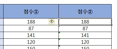 점수②의 188 셀 하나만