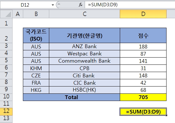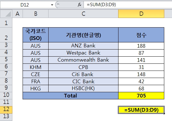 아래는 "=SUM(D3:D9)" 라는